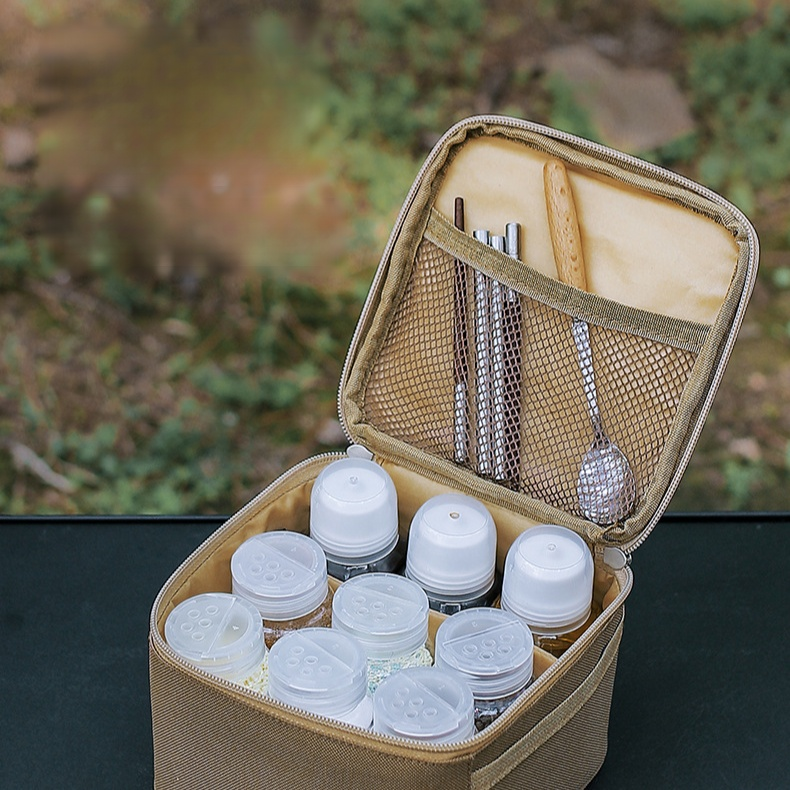キャンプ用調味料収納ボックス・持ち運び便利な調味料ボトルセット